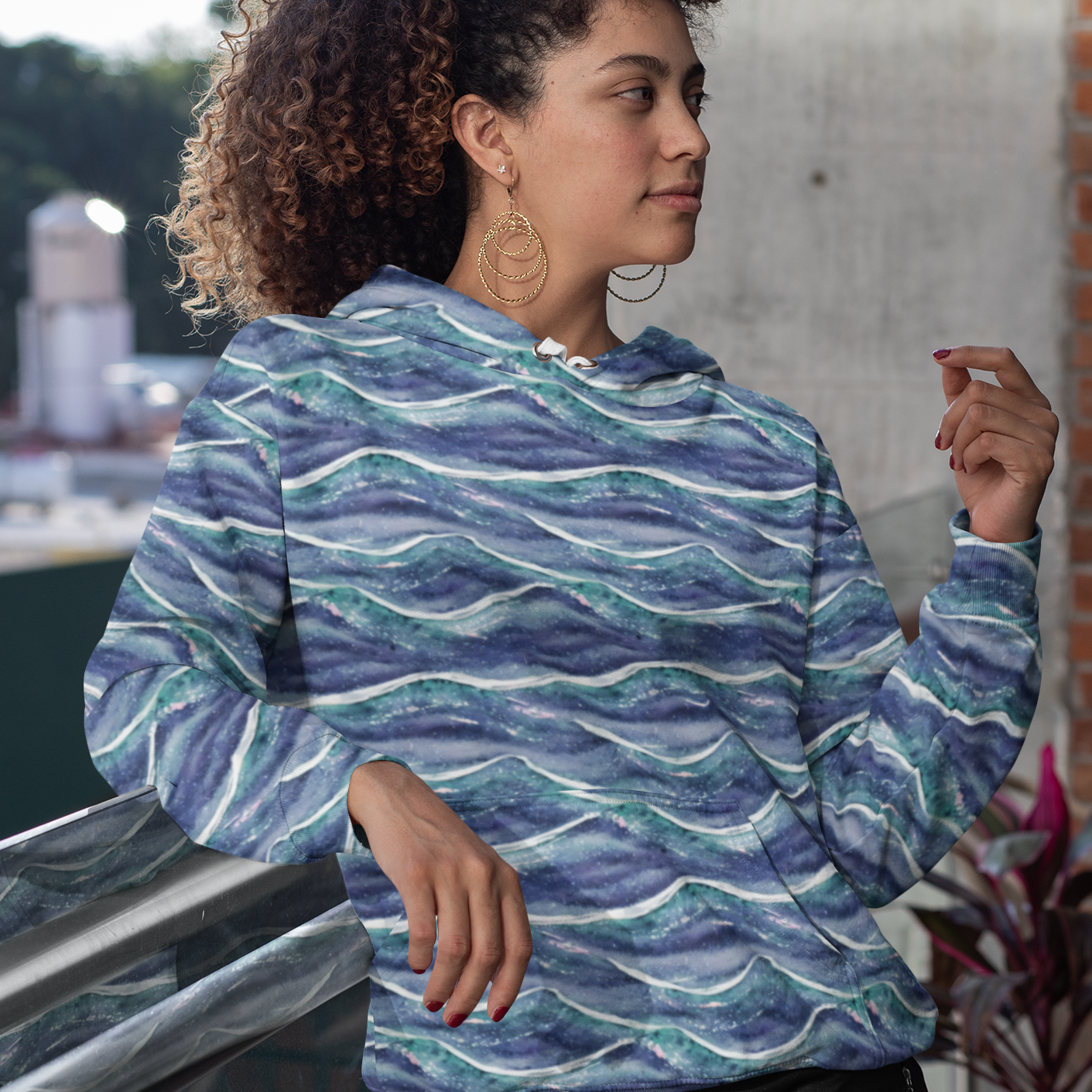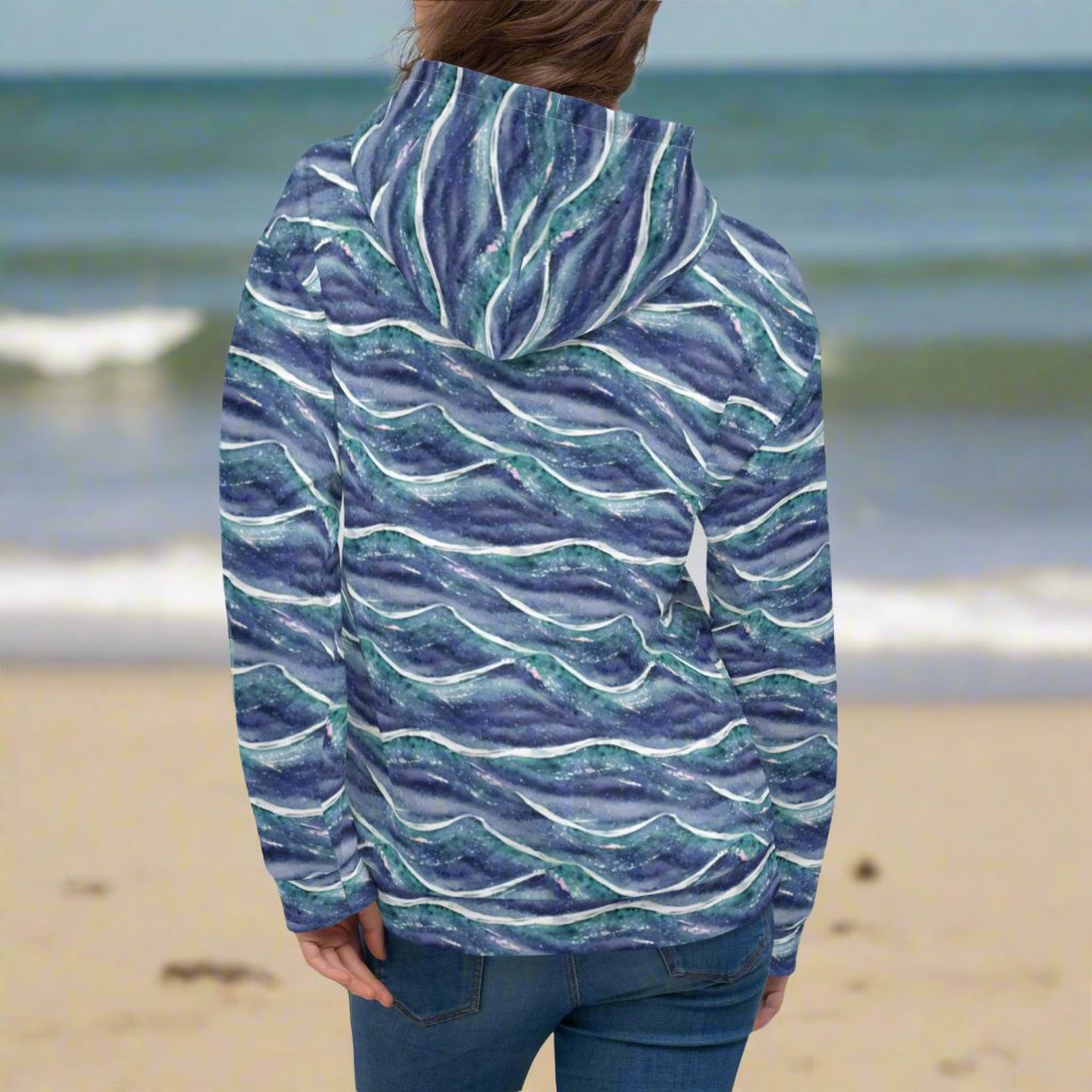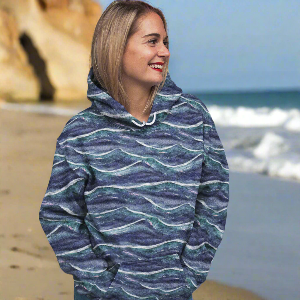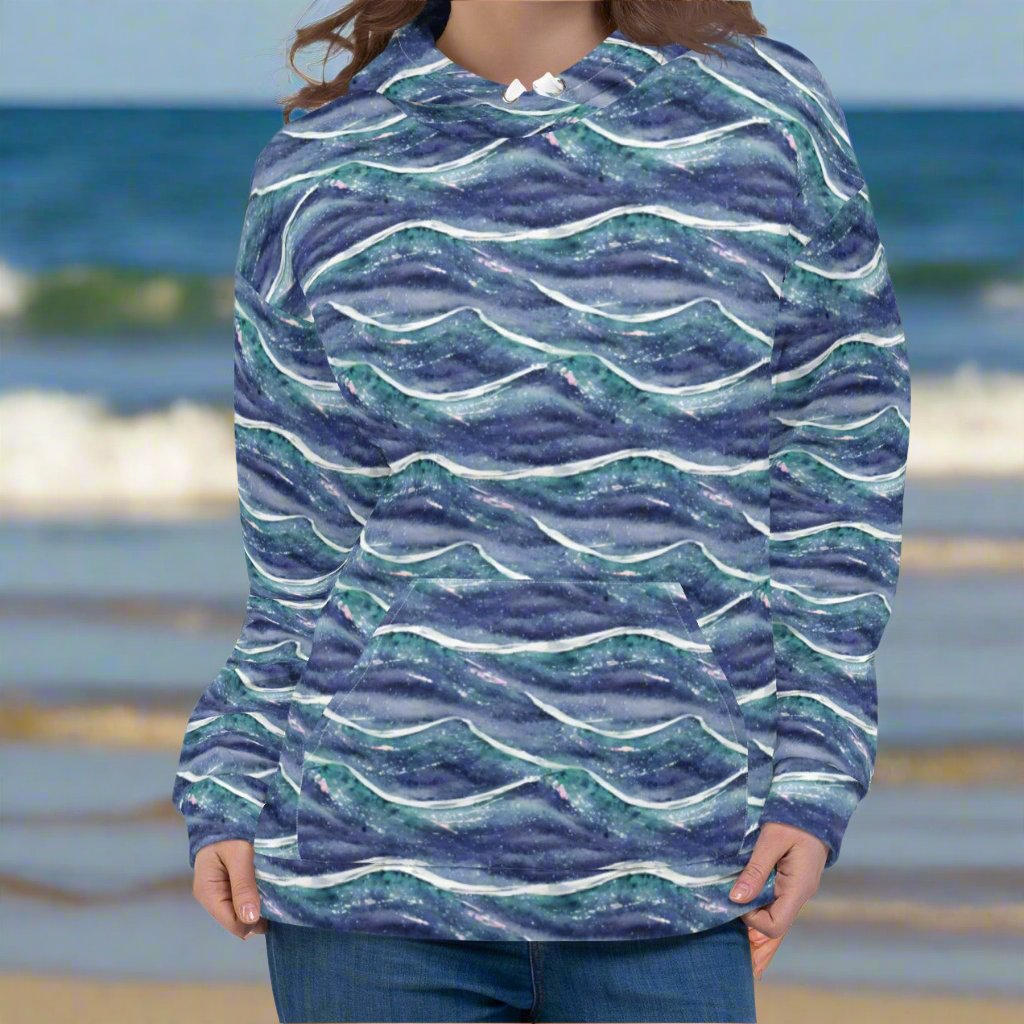 Blue White Waves Beach Hoodie Cozy Sweatshirt