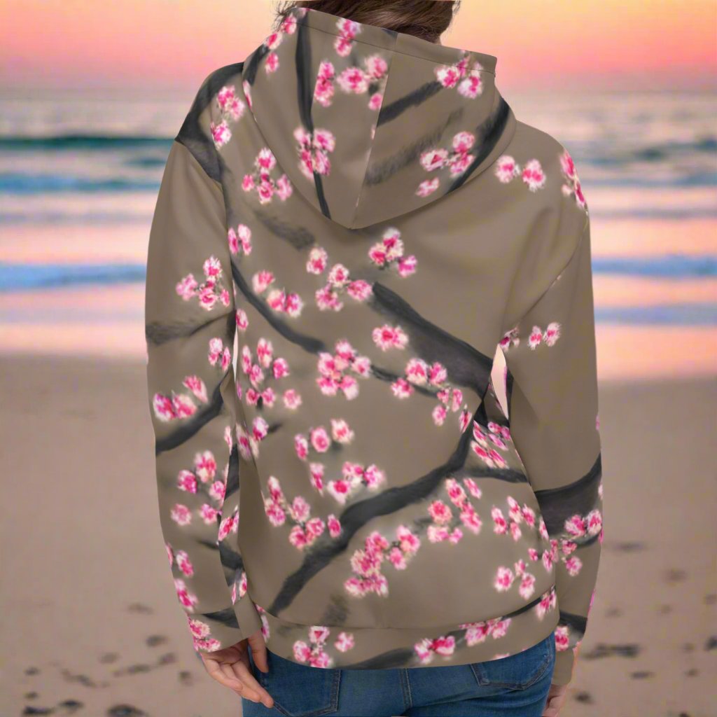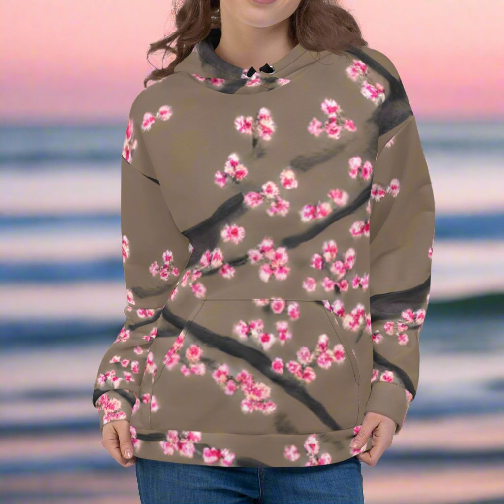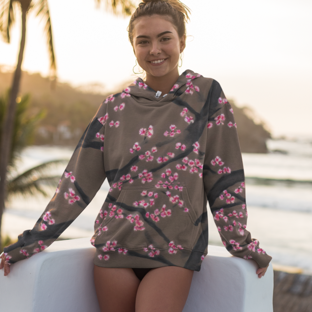 Step into a world of tranquility with the Cherry Blossoms Beach Hoodie, featuring a serene floral design inspired by the delicate beauty of cherry blossoms. This cozy, unisex hoodie combines soft pink and brown hues with a touch of nature's elegance, making it perfect for chilly beach days or layering during cool weather. With its relaxed fit and gentle, nature-inspired style, this hoodie brings a sense of calm and charm to any wardrobe.