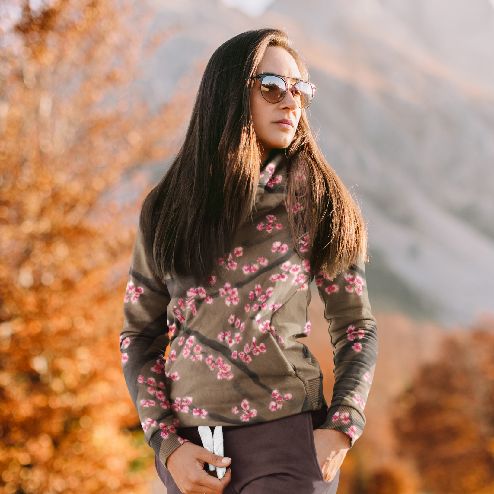 Made with 95% recycled polyester and 5% spandex, this eco-conscious hoodie offers a soft cotton-feel fabric face and a warm brushed fleece interior for all-day comfort. The double-lined hood with cherry blossom design on both sides, durable drawstrings, and overlock seams add to its durability and coziness. Embrace the beauty of cherry blossoms wherever you go with this uniquely stylish and sustainably crafted piece.