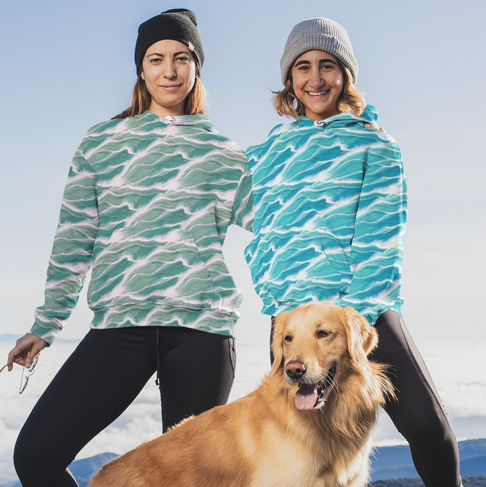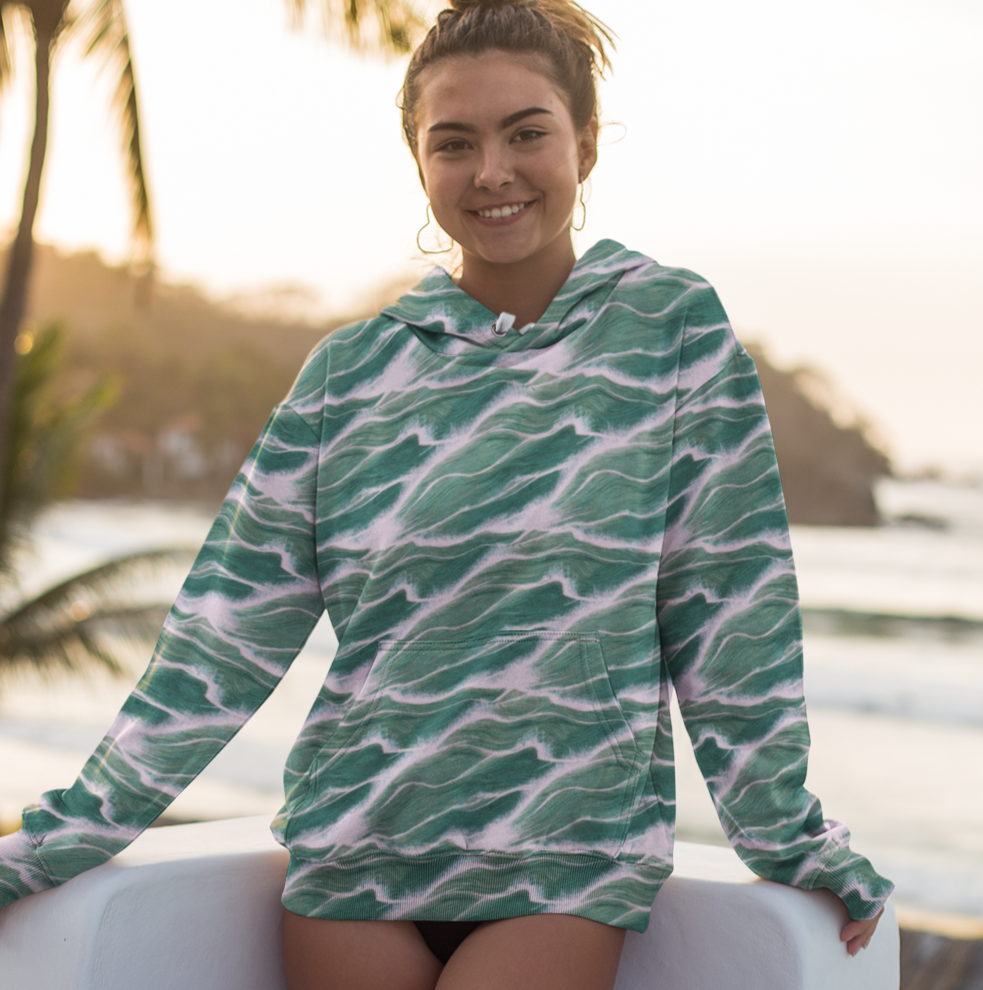 Green White Waves Beach Hoodie Cozy Sweatshirt